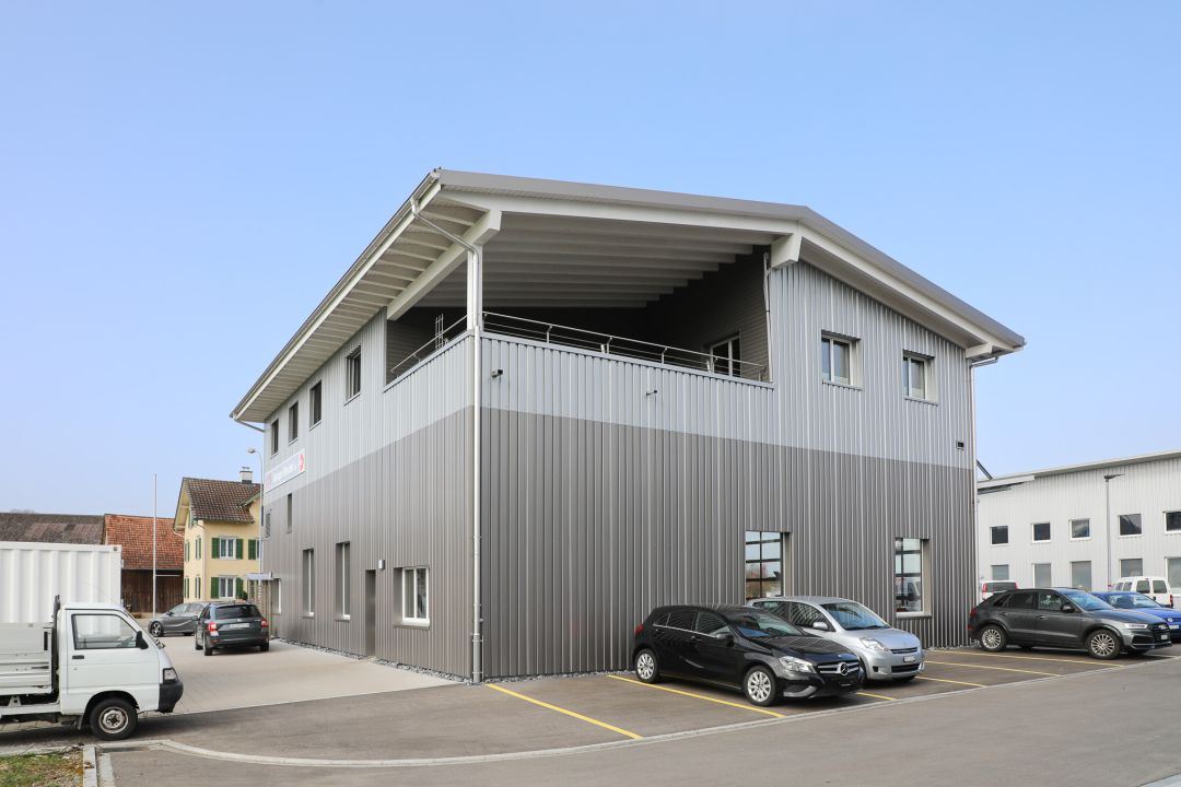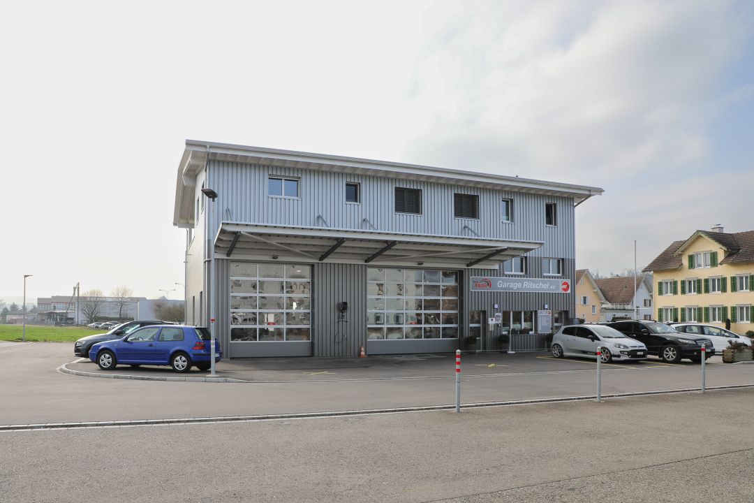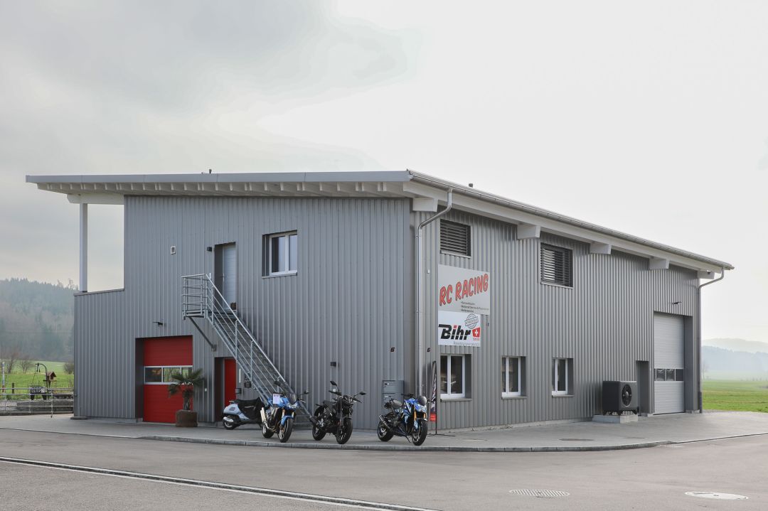 Auto- und Motorradwerkstatt mit BetriebsleiterwohnungHolzkonstruktion mit Wellblechfassade