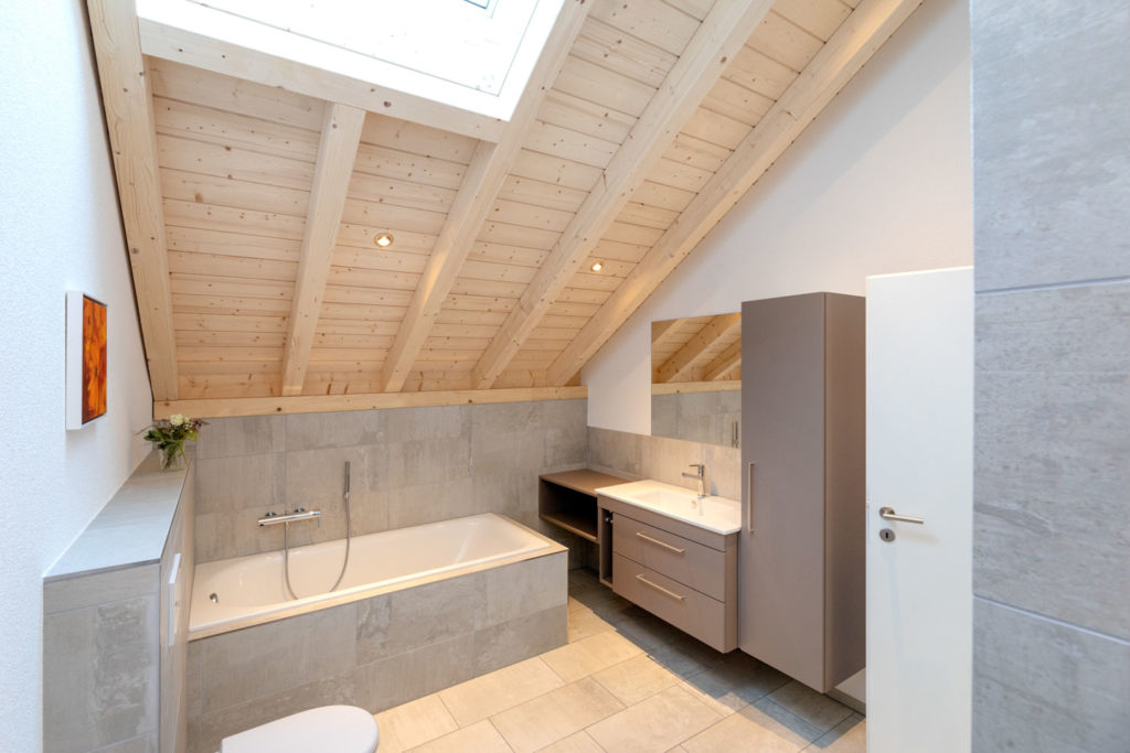 Abbruch Scheune und Neubau LKW Einstellhallen mit zwei Wohnungen. Zusätzliches Highlight ist der Liftschacht aus Holz