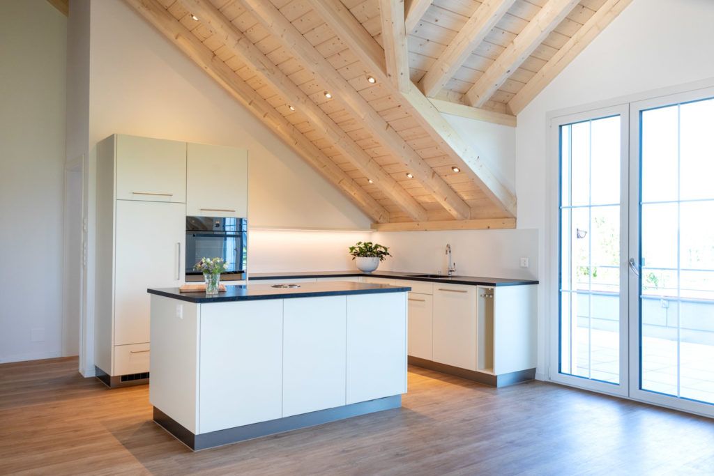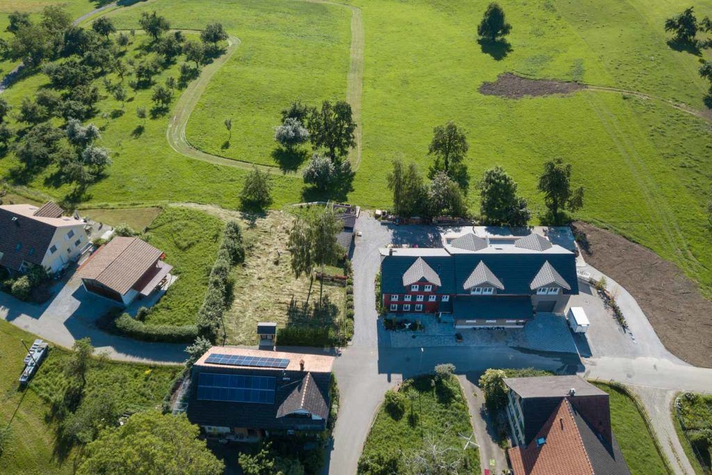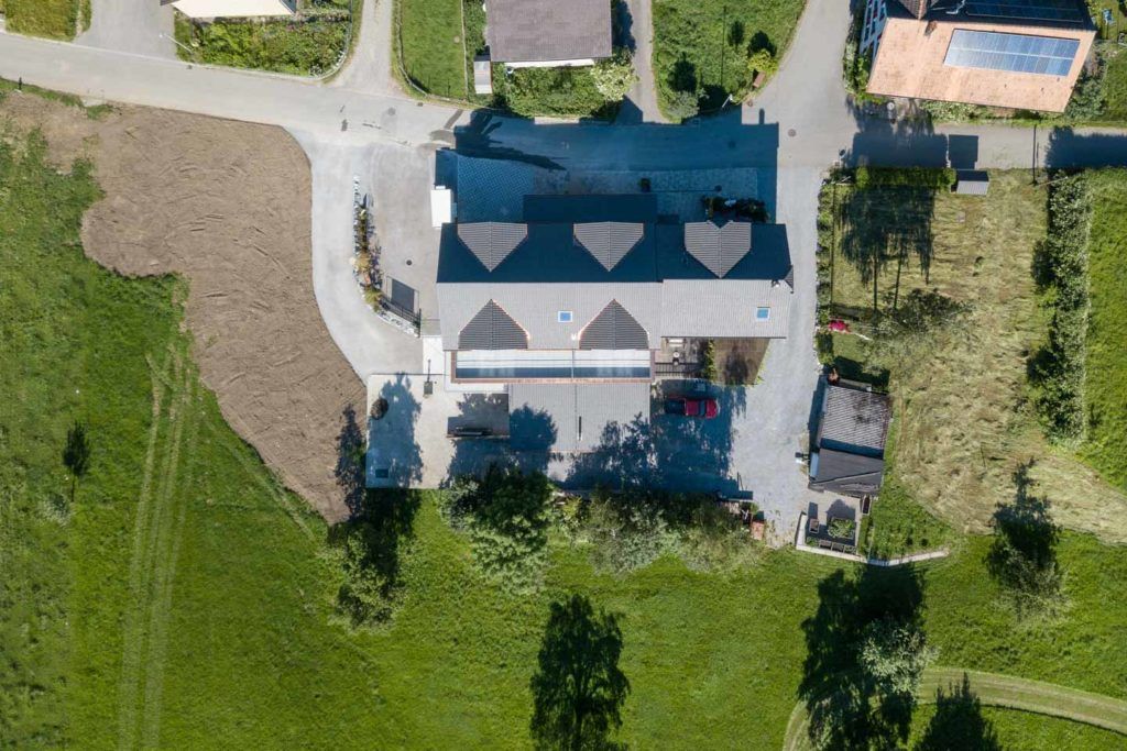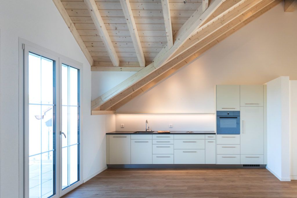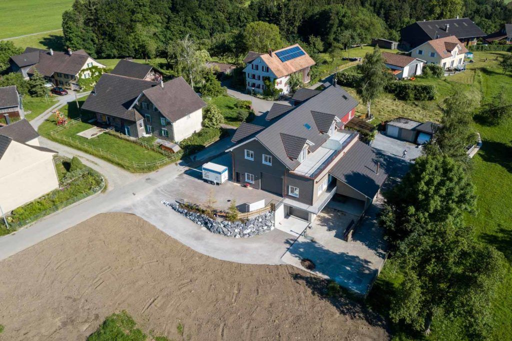 Abbruch Scheune und Neubau Einstellhalle mit zwei Wochnungen – Liftschacht auch in Holz.