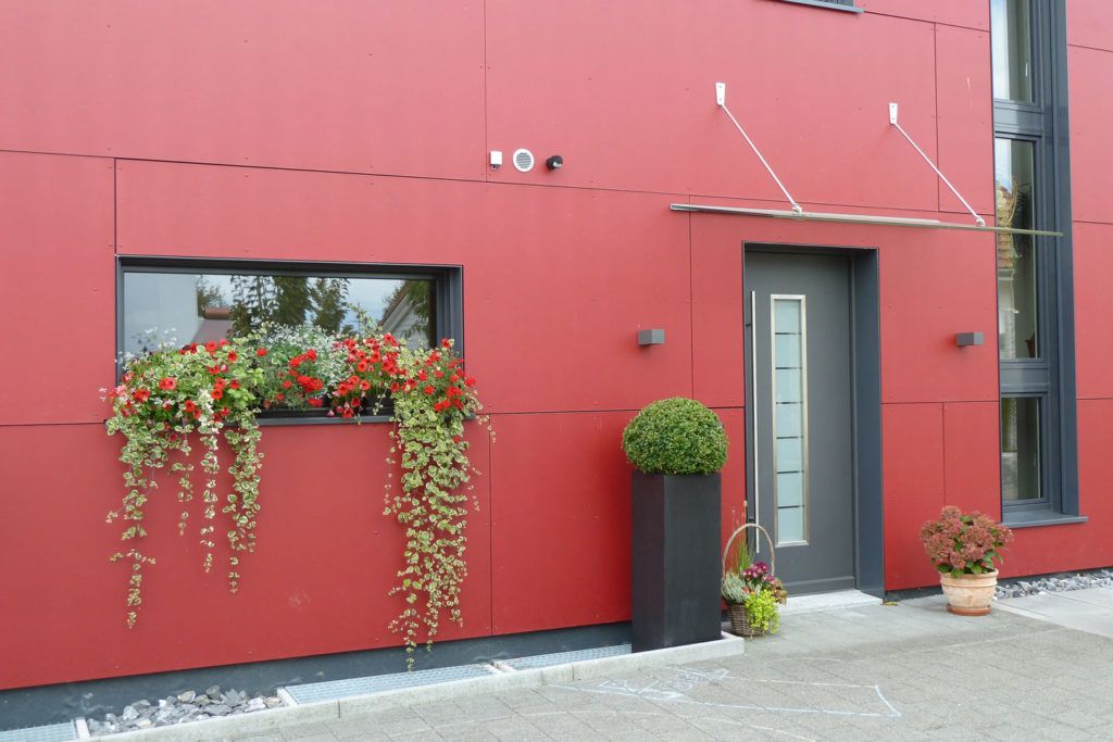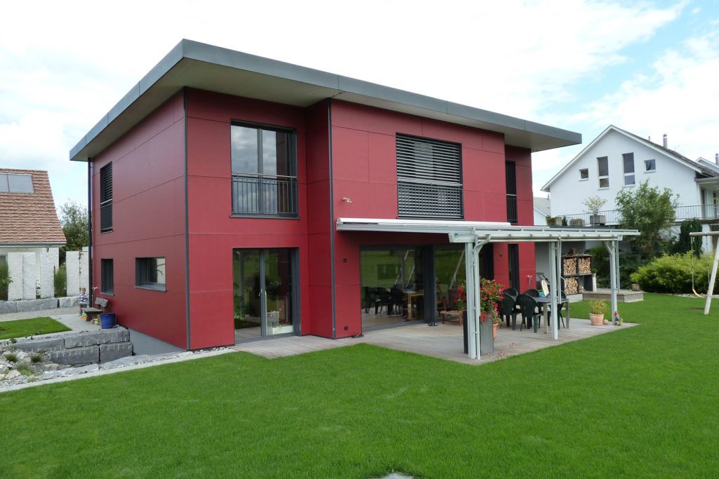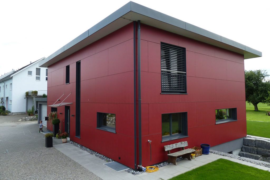 EFH mit Flachdach und Eternitfassade.