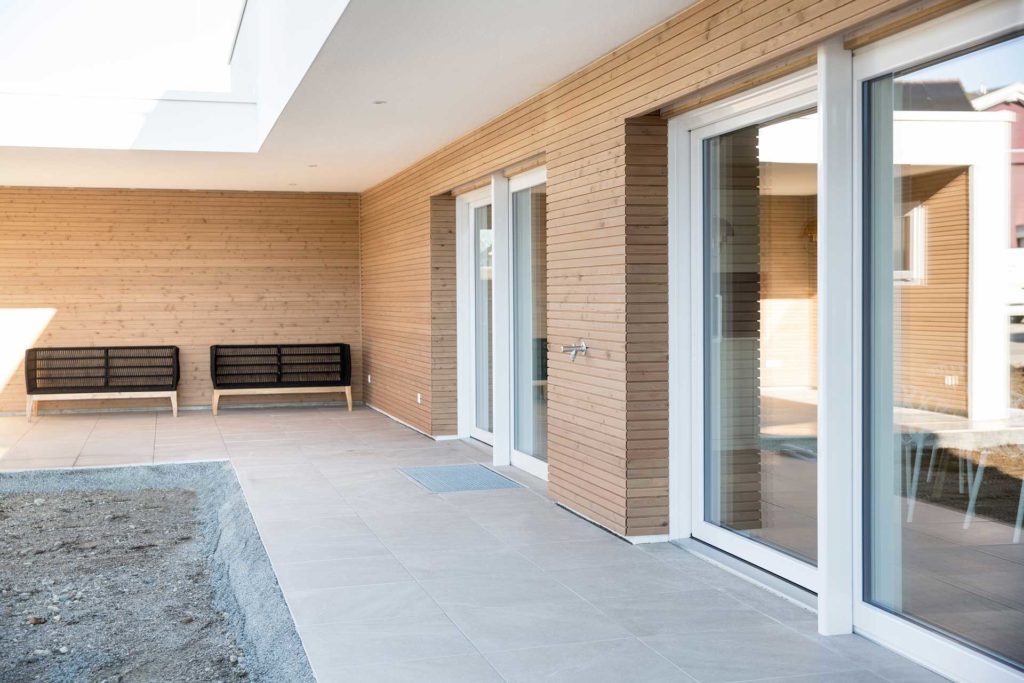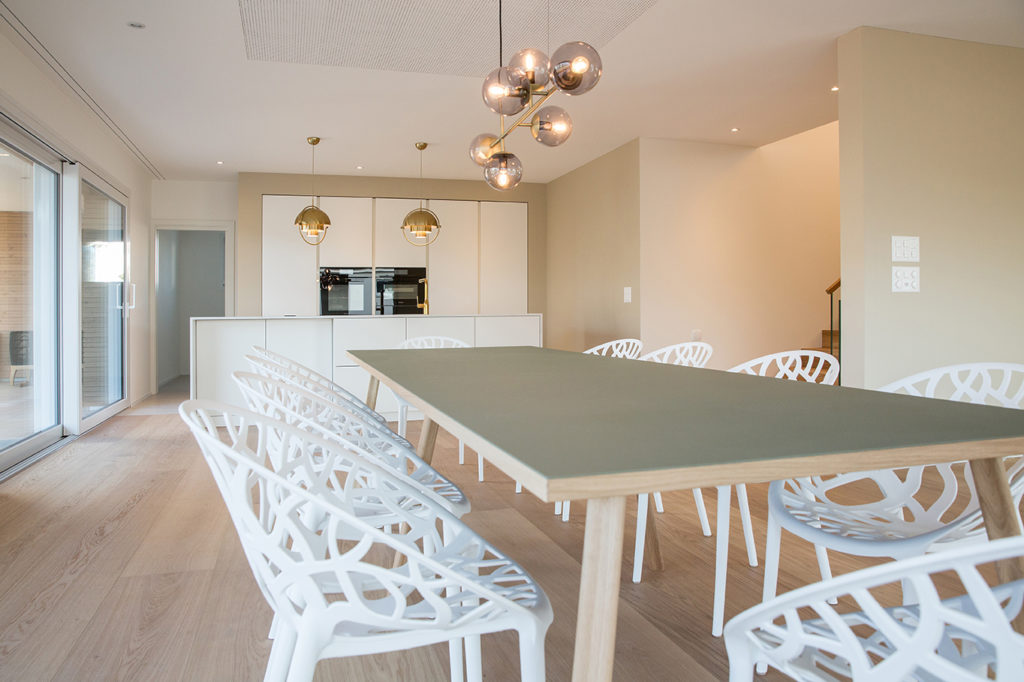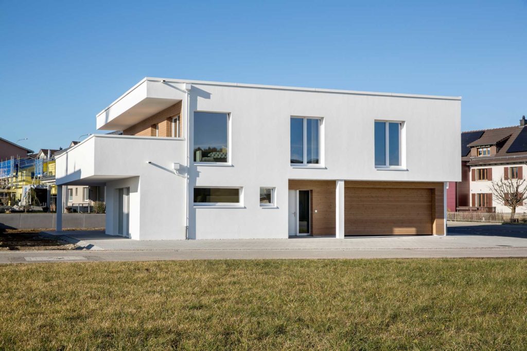 Einfamilienhaus mit Flachdach und stilvollem, modernem Innenausbau